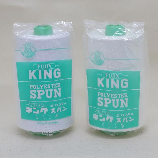フジックスのキングスパンは、ポリエステル素材の中でもミシン糸用として特別に紡糸された、高強力、低伸度、低収縮タイプの原糸を用い、さらに高度な加工技術によって、一段と<可縫性>を高め、使用範囲を広げた、スーパークォリティのミシン糸です。