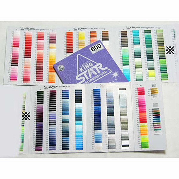 通常カラー、蛍光色、アルミカラー、金銀糸の全色(600色)が掲載されています。刺繍の微妙な色合わせに、ぜひご利用ください。