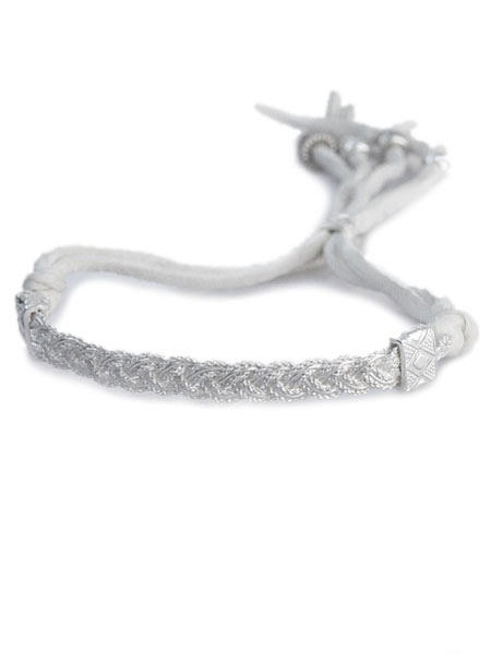 編み込んだ様なデザインのシルバートップに、レザーを合わせたブレスレット。