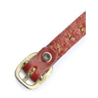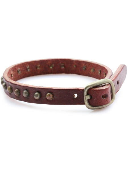 ユーズド加工されたバックル、たっぷりと打ち込まれたスタッズ、そして肉厚なレザーが圧倒的な存在感を誇る仕上がりとなっています。