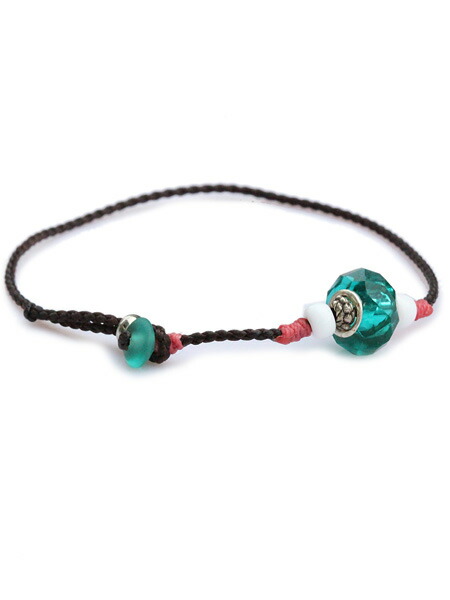 NORTH cafe & craft ノースカフェ & クラフト カットビーズ ワックスコード スライドアンクレット (GREEN) 正規品 グリーン クリア シルバー ホワ…