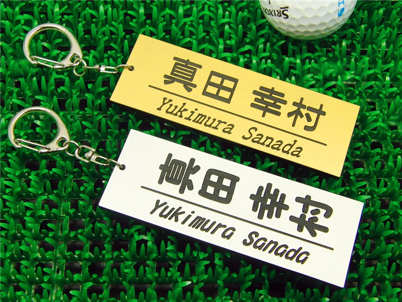 ネームタグ ゴルフ ネームプレート 二層アクリル 彫刻名入れ 二列 ゴールド 逸工房 送料無料