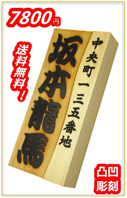 木製表札 表札 裏穴 凸凹彫刻加工 国産桧 檜表札 天然銘木 二列 21×9×3cm 逸工房