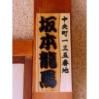ヒノキに、レーザー彫刻加工、透明ニス仕上げの天然銘木表札です。
