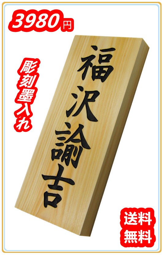 木製表札 表札 裏穴 彫刻加工 国産桧 檜表札 天然銘木 20×8.5×2cm 逸工房