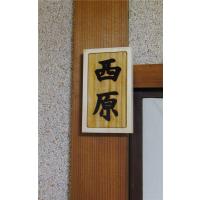 ヒノキに、レーザー彫刻加工、透明ニス仕上げの天然銘木表札です。