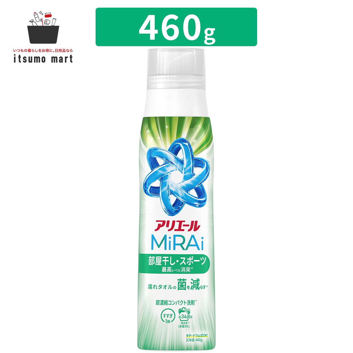 アリエールミライ 超濃縮 部屋干し&スポーツ 本体大 460g。