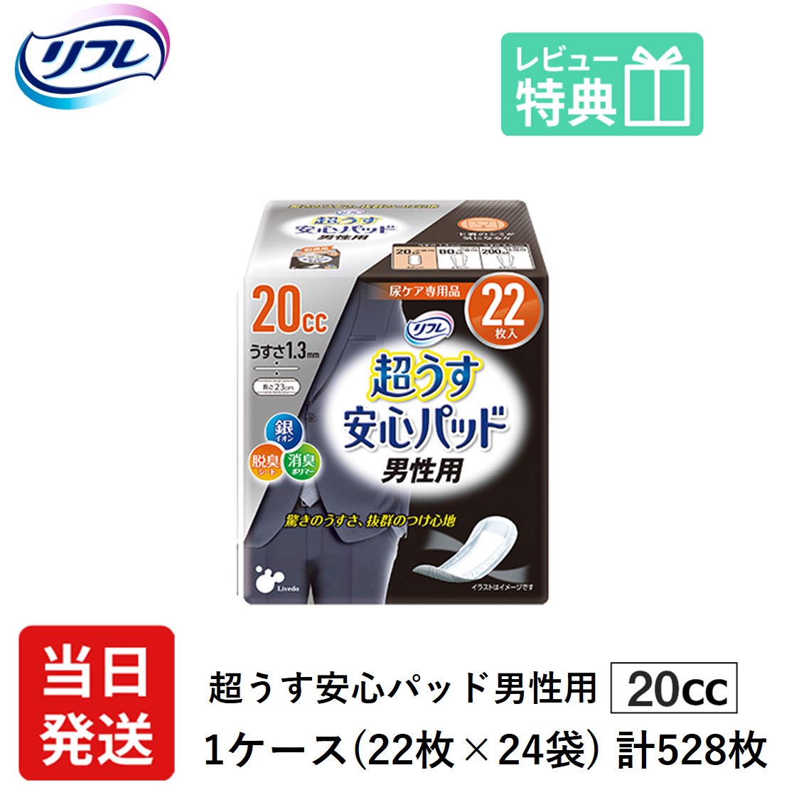 【当日発送ケース販売】 尿もれが少し気になる男性に 男性用 リフレ 軽失禁 尿漏れ シート 介護 失禁 安心パッド 超うす 20cc 528枚 22枚×24袋 大人用 紙おむつ