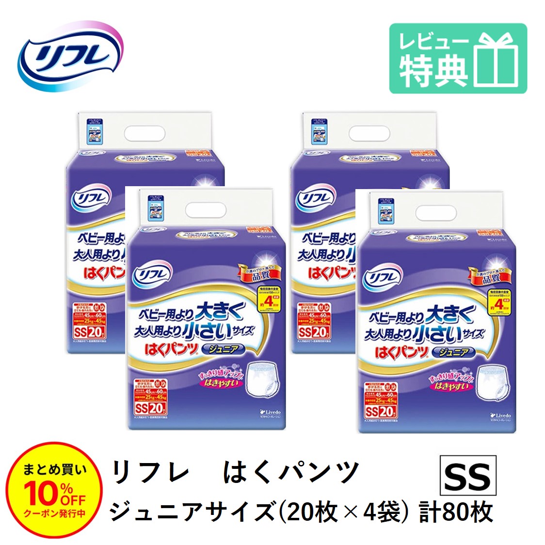 | 製品名 | リフレ はくパンツ ジュニア SSサイズ 20枚×4袋 |