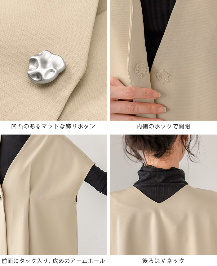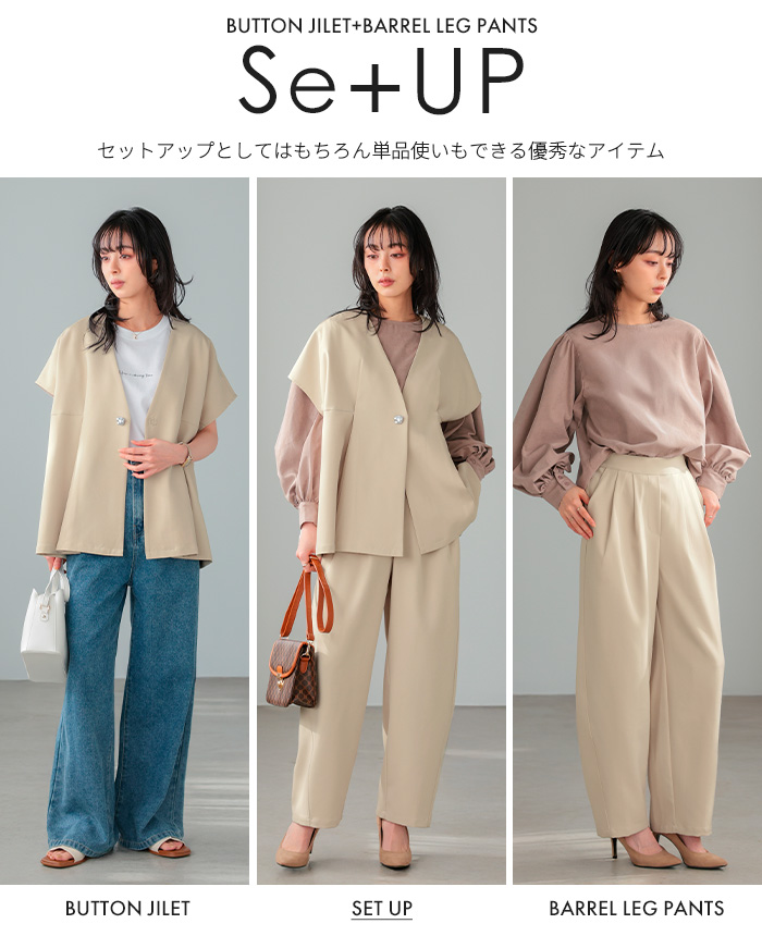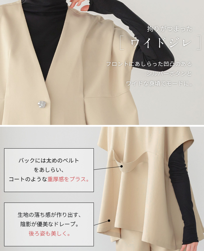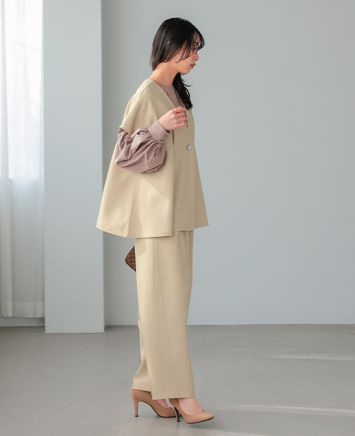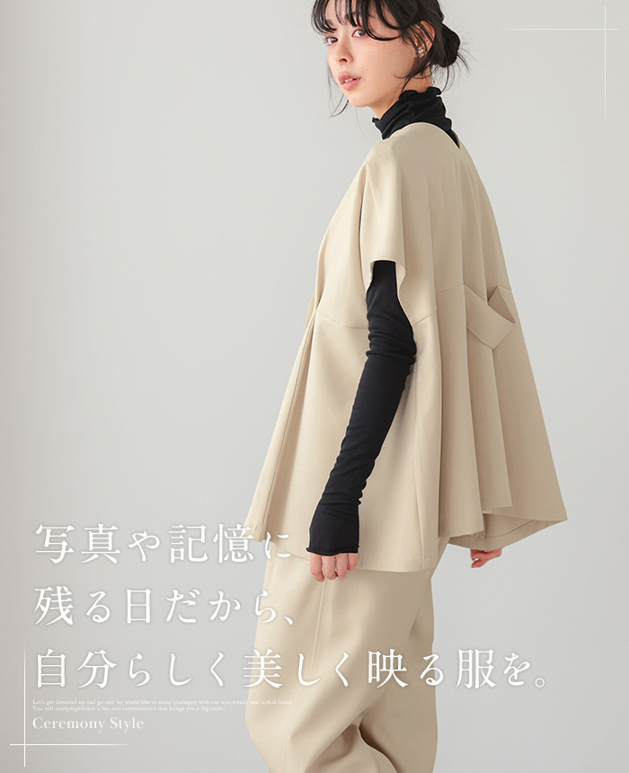 ![]() ![]() ![]() ![]() ![]() ![]() ![]() ![]() ![]() ![]() ![]() ![]() ![]() ![]() ![]() ![]() ![]() ![]() ![]() ![]() ![]() ![]() ![]() ![]() ![]() ![]() ![]() ![]() ■Size(cm) 【F】ジレ:着丈65 バスト130 肩幅70 アームホール45 天幅15 下がり23/10 裾周り180 【F】パンツ:総丈99 ウエスト64-88 ヒップ100 股上34/44 股下66 わたり幅34 裾周り46 ■Fabric ポリエステル95% ポリウレタン5% 生地感:さらっとした手触りで、程よいハリ感のある生地 裏地:なし 伸縮性:少しあり 透け感:オフベージュは若干あり 生地の厚さ:普通 ■Weight ジレ:約377g パンツ:約423g ■Color ※共通:ボタンはシルバー ブラック(標準的な黒) オフベージュ(薄いベージュ) ジレ:なし パンツ:サイド×2、※バックはフェイク ■Country of origin 中国 ■洗濯表示 ![]() ■Attention ※ご覧になるモニターや環境により実際の商品と色味が異なる場合がございます。予めご了承ください。 ※実寸サイズは平置きメジャー採寸のため若干の誤差が生じる場合がございます。 ※お取り扱い・お洗濯につきましては、付属の商品タグをご使用前に必ずご確認下さい。 ※濃色の商品は色落ち・移染する可能性がございますので、お取り扱いにはご注意下さい。 ※繊維製品のため、同じ商品であっても生産時期やカラーによって伸縮率・生地感・色味が多少異なる場合がございます。特にニット製品に関してはプレス・洗い加工等で5cm前後の誤差が生じる場合がございます。 これらは品質上問題はございません。予めご了承下さい。 ■Staff comment AI/身長:154cm(普段のサイズ:M-L) 体型:骨格ストレート 全体的に厚みのある、産後体型。 トップスはMサイズを選ぶ。 ウエストと腰回りが大きく、ボトムはLサイズを選ぶこともあります。 ・ジレ 【着丈】ヒップ下3cm。 【袖丈】肘上3cm。 ・パンツ 【総丈】床につく。 【ウエスト】ゆったり。 【ヒップ】ゆったり。 【一言コメント】 シルバーのボタンがアクセントになっていて、高見えします。 AYA/身長:158cm(普段のサイズ:M) 体型:骨格ウェーブ 上半身筋肉質の標準体型。肩幅は広くバストは平均。 ウエストは細くヒップが大きいので、 ヒップに合わせてボトムは選びます。 ・ジレ 【着丈】ヒップ下。 【袖丈】肘上5cm。 ・パンツ 【総丈】床につく。 【ウエスト】かなりゆったり。 【ヒップ】かなりゆったり。 【一言コメント】 ジレが深めのVネックなので、顔まわりがスッキリ見えます。 RISA/身長:165cm(普段のサイズ:L-LL) 体型:骨格ナチュラル 体に厚みがあるやや痩せ型。 バスト・ウエスト・ヒップは標準ですが、 肩幅が広くて腕が長め、ふくらはぎは筋肉質。 身長が高いため普段Lサイズを選びます。 ・ジレ 【着丈】ヒップ半分ぐらい。 【袖丈】二の腕半分。 ・パンツ 【総丈】床上2cm。 【ウエスト】ちょうどいいサイズ感。 【ヒップ】ゆったり。 【一言コメント】 締め付けの無いセットアップで動きやすく、単品使いしやすいのもお気に入りです。 |