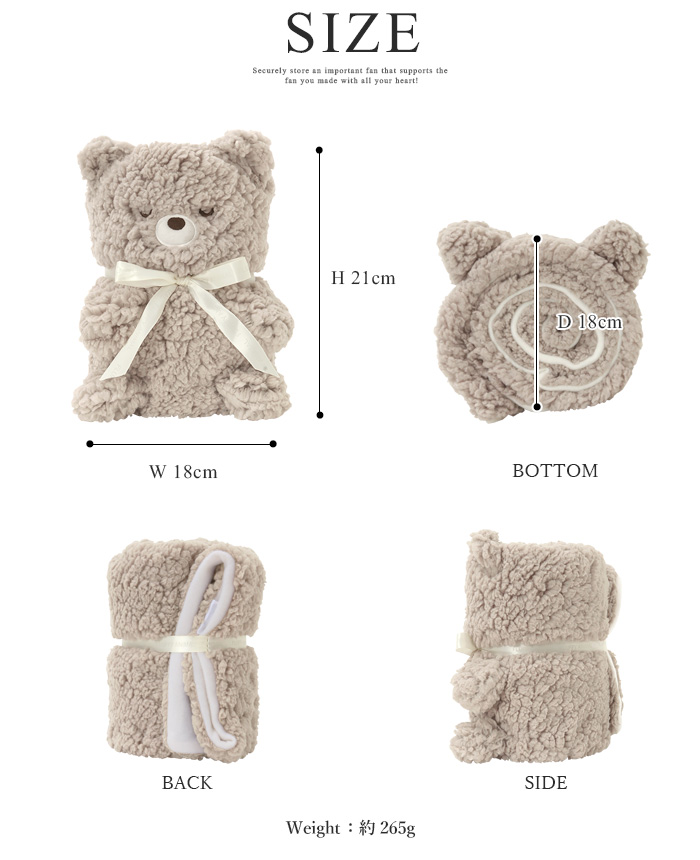 ![]() ![]() ![]() ![]() ![]() ![]() ![]() ![]() ![]() ![]() ![]() ![]() ■Size(cm) ぬいぐるみ 幅(W) 18 高さ(H) 21 マチ(D) 18 広げた状態 幅(W) 90 高さ(H) 60 ■Fabric ポリエステル ■Weight 約265g ■Color 表地×リボン×裏地 ハリネズミ(ブラウンとホワイト×薄いブルー×ホワイト) ヒツジ(黄みがかったアイボリーにベージュ×薄いブルー×ホワイト) クマ(くすんだ薄いグレージュ×薄いイエロー×ホワイト) クロネコ(墨黒とアイボリー×薄いイエロー×ホワイト) トイプードル(赤身のあるキャメル×薄いピンク×ホワイト) ウサギ(少し黄みがかった薄いピンク×薄いピンク×黄みがかったピンク) ■Country of origin 中国 ■Attention ※ご覧になるモニターや環境により実際の商品と色味が異なる場合がございます。予めご了承ください。 ※実寸サイズは平置きメジャー採寸のため若干の誤差が生じる場合がございます。 ※お取り扱い・お洗濯につきましては、付属の商品タグをご使用前に必ずご確認下さい。 ※濃色の商品は色落ち・移染する可能性がございますので、お取り扱いにはご注意下さい。 ※機械による生産の為、形やサイズに多少の誤差が生じる場合がございます。 ※素材によって染料特有の匂いが強く感じられる場合がございますが、数日のご使用や陰干し等で匂いが軽減されます。 これらは品質上問題はございません。予めご了承下さい。 |