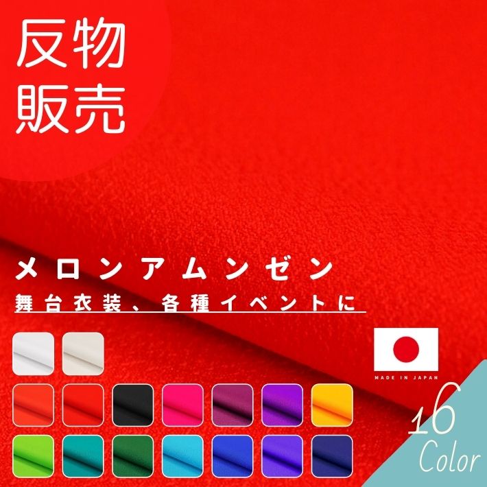 | 特徴 | メロンアムンゼンは通常のアムンゼンより織り目の浮き出しが強く、表面がメロンの皮の模様に似ていることからその名がつけられています。 弊社定番のアムンゼンよりやや厚手でハリ感もあるので、ボリュームを持たせたい部分など用途に応じて使い分ければ表現の幅がグッと広がります。 ちりめんにも似ていることから、特によさこいや和太鼓の衣装によく用いられています。 和のテイストを活かしたコスプレや和装小物にもオススメです。 (日本製) |