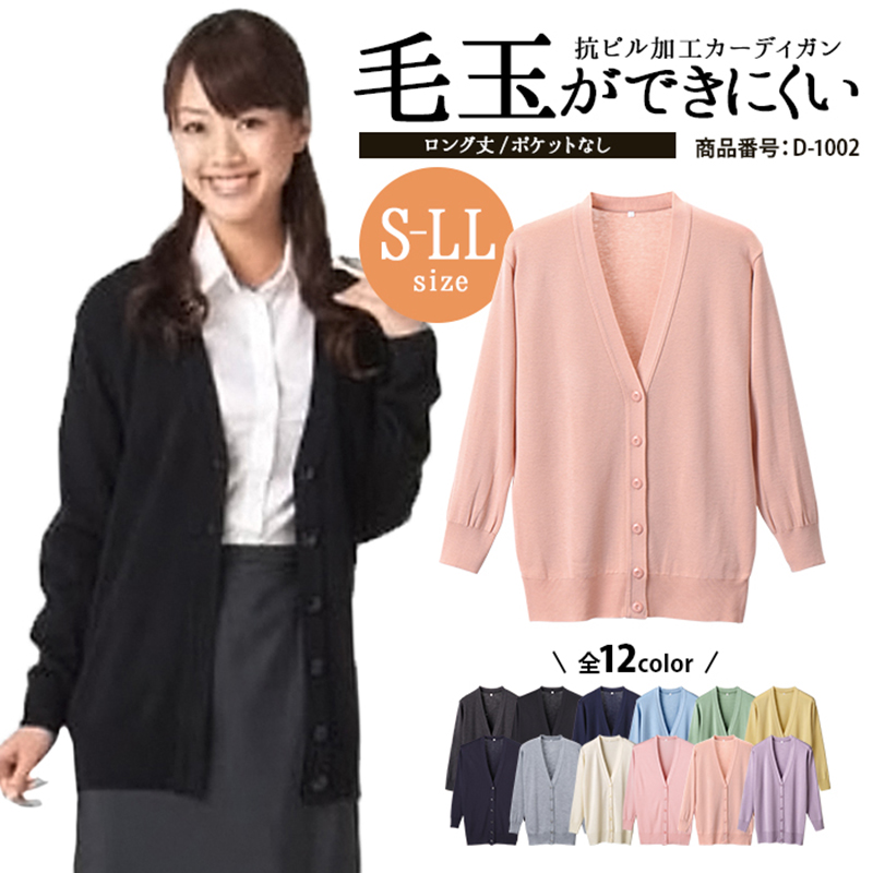 カーディガン ロング 毛玉ができにくい 毛玉防止 ゆったり レディース 秋 冬 洗える 黒 紺 ナース ユニフォーム 医療 制服 オフィス 事務 事務服 冷房対策
