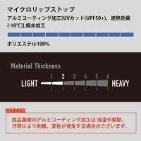 | 素材 | マイクロリップストップ,アルミコーティング加工[UVカット(UPF50+)、遮熱効果(-10℃)],撥水加工 |