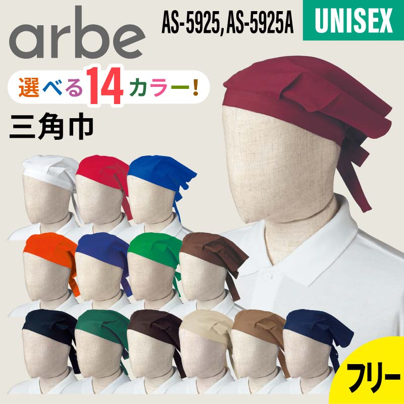 【メール便】 三角巾 大人 無地 飲食店 厨房 業務用 ユニフォーム 男女兼用 フリーサイズ arbe アルベ chitose チトセ AS5925 AS5925A