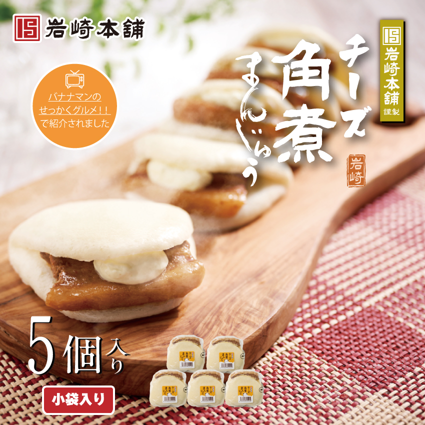 TBS テレビ 「 バナナマンのせっかくグルメ 」や、 日本 テレビ 「 ZIP! 」 など TV 新聞 YouTube で多数紹介されています。 異文化交流の街長崎で生まれた 角煮饅頭 ふわふわ の皮に とろとろ の 角煮 を挟んでいます。 角煮まんじゅう の 元祖 岩崎本舗 の「 長崎角煮まんじゅう 」は 長崎名物 東坡肉 ( トンポウロウ ) をもっと 手軽 にとの思いで開発しました。 ここ 長崎 では今や 定番の味 角煮まんじゅう 。 全国の方からは いつもの 肉まん とは 一味違う ちょっと 贅沢 で めずらしい 長崎土産 としても 大人気 です。 個包装 になっており レンジ で 簡単 に温められます。小腹がすいた時 はもちろん 時間のない朝 や 子どものおやつ 夜食 や おつまみ としても 手軽 に食べられるので、 手土産 で受け取った方からも 喜ばれています。 とろけるようなチーズと角煮のあじわいお楽しみください。