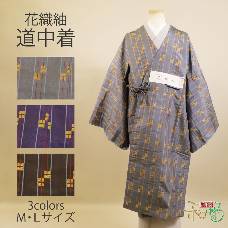 花織紬 道中着 和装コート 単衣 道中着 日本製 Mサイズ Lサイズ 仕立て上がり ちりよけ レディース バチ衿 和装 コート 塵除け プレタ レースコート