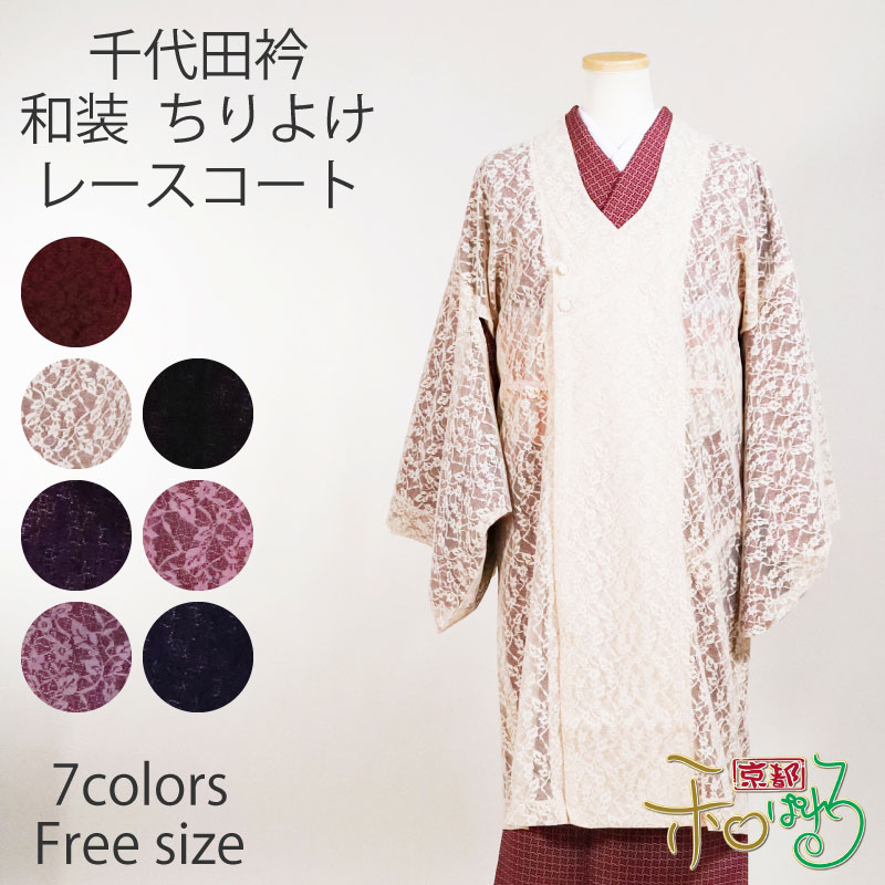 【全7色 】和装コート レース 千代田衿 道中着 日本製 フリーサイズ 仕立て上がり ちりよけ レディース 和装 コート プレタ 紺 ピンク 紫 臙脂 黒 ベージュ 藤