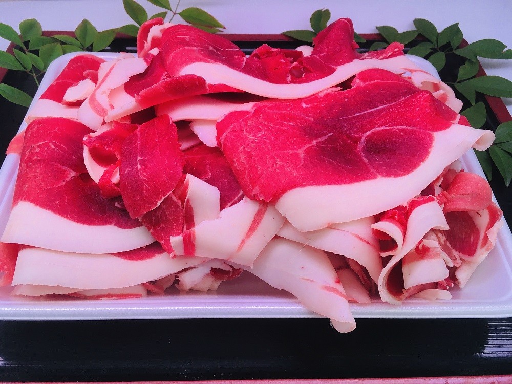 内容:スライス(500g×2)モモ、ウデ肉を含めいろんな部位が入っています