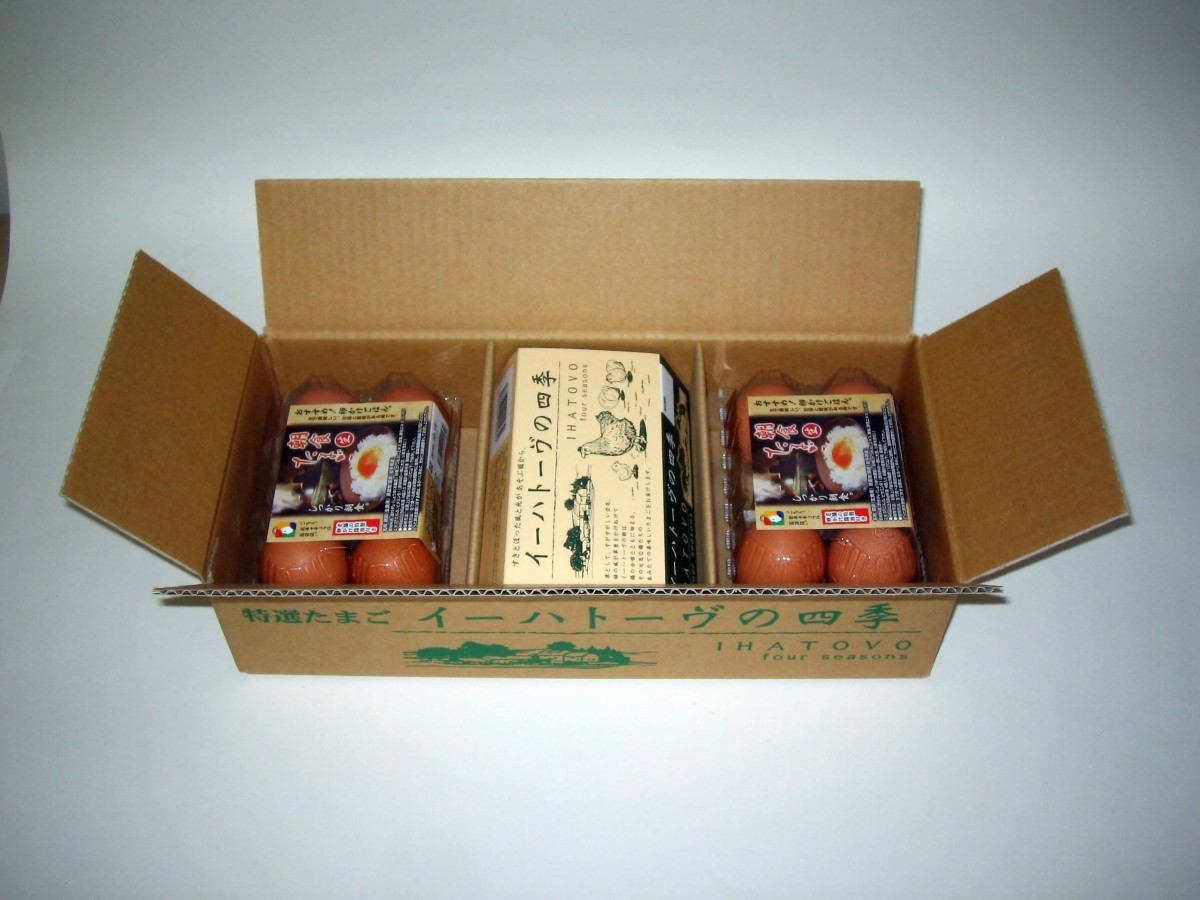 鶏の飼料に自然由来の有機酸・アミノ酸が多く含まれた大地の養分や古代の貝化石等を与えた甘味と旨味のある卵「イーハトーヴの四季」。