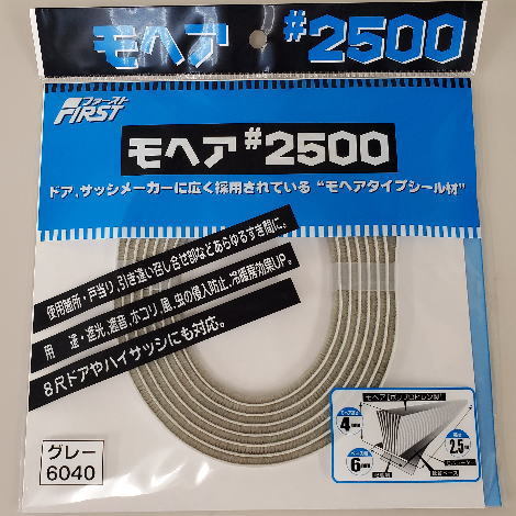 (メール便 可 4個まで) ファースト すき間テープ モヘア #2500 6040 グレー 6mm×4mm×2.5m *