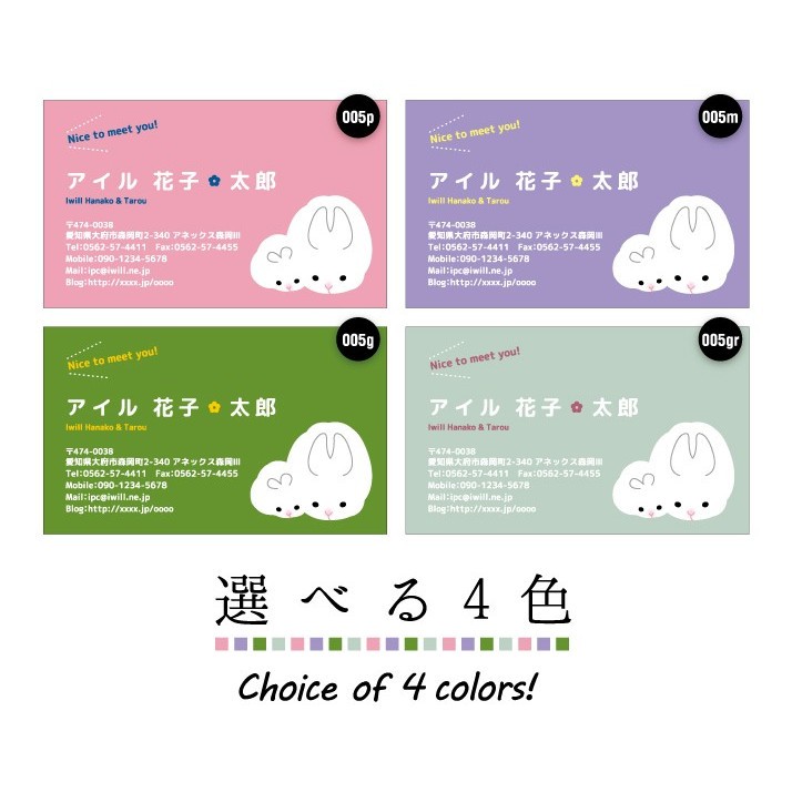 名刺作成 親子名刺 アニマル o005 片面印刷 名刺印刷 動物 うさぎ