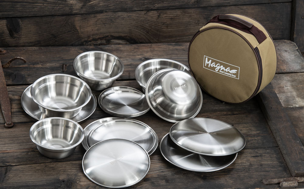 MAGNA(マグナ) SUS304 ステンレス食器セット キャンプ バーベキュー アウトドア ファミリーセット