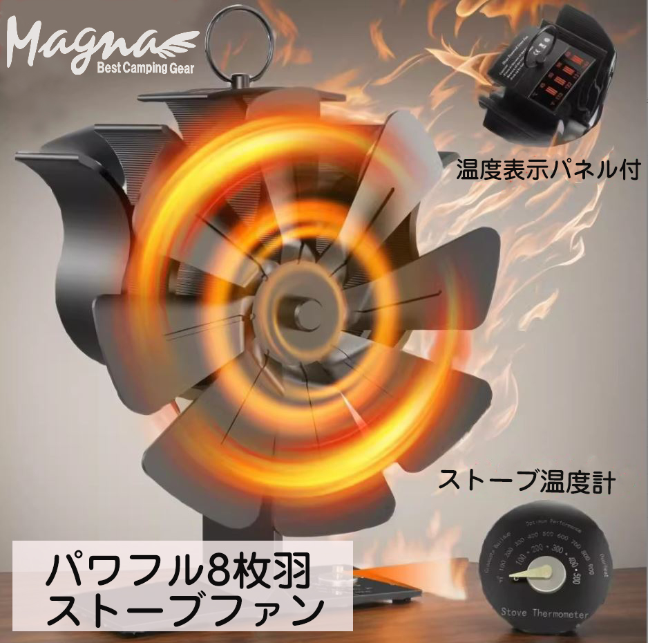 MAGNA(マグナ)8枚羽 ストーブファン 小型 薪ストーブファン 石油ストーブファン 日本語取扱説明書 ブラック