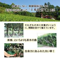 荒茶の状態で三年間常温熟成してから焙煎しています。煎茶と比べ、刺激成分のカフェインタンニンが少なく、