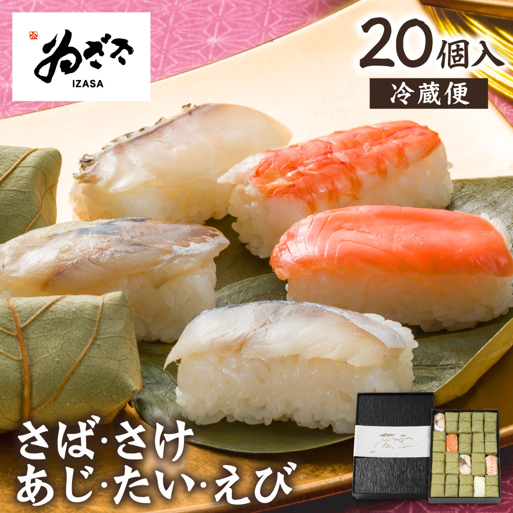 ゐざさ 柿の葉寿司5種20個入(さば さけ あじ たい えび) グルメ ギフト お取り寄せ 定番 人気 奈良土産 食品 いざさ 中谷本舗【冷蔵便】