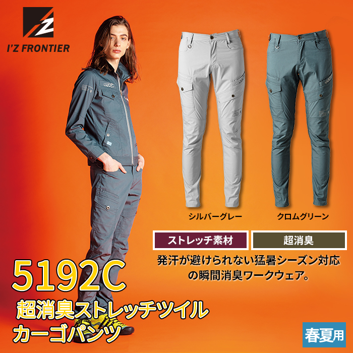 アイズフロンティア 作業服 5192C 超消臭ストレッチツイルカーゴパンツ 73-101 春夏 作業着 おしゃれ I'ZFRONTIER