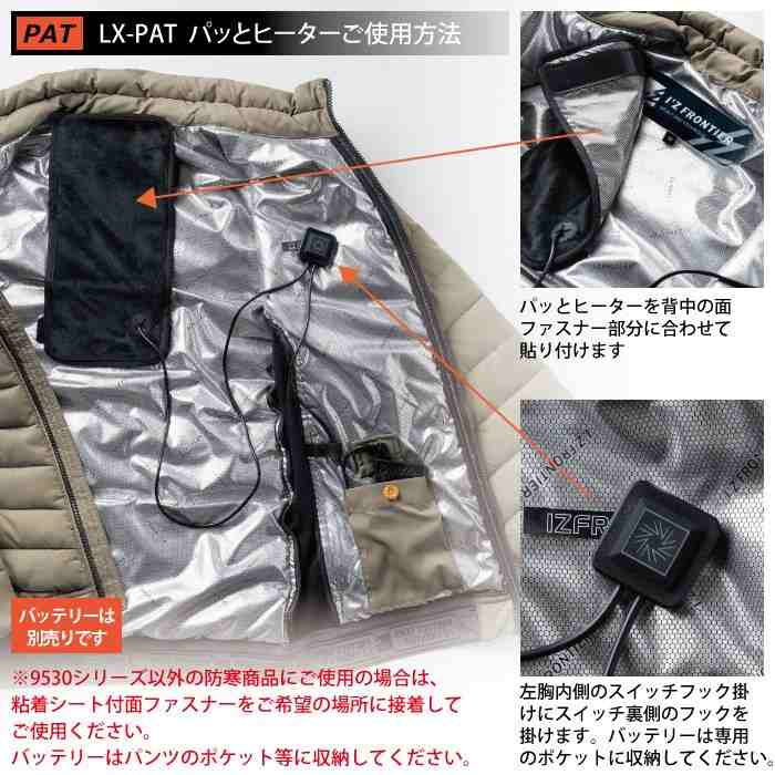 アイズフロンティア 作業服 LX-PAT パットヒーター 秋冬 防寒 簡単 リンクサス 衣服装着 粘着シート Linxas 電熱ヒーター 作業着 おしゃれ I'ZFRONTIER