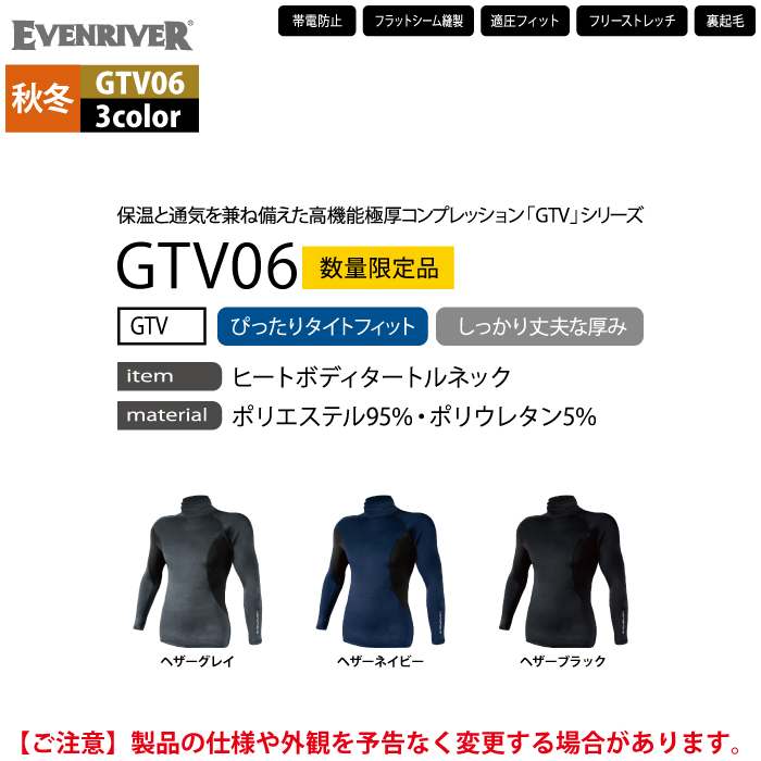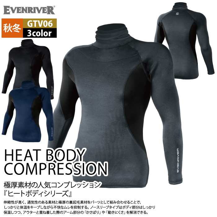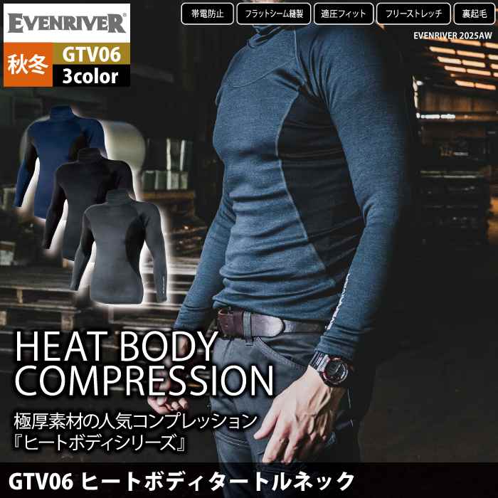 イーブンリバー EVENRIVER 作業服 インナー 2025秋冬新作 GTV06 ヒートボディタートルネック M-5L 防寒 作業着 おしゃれ 保温