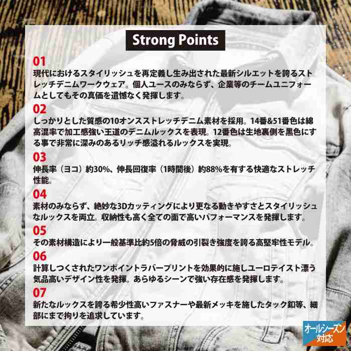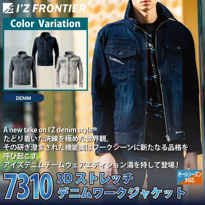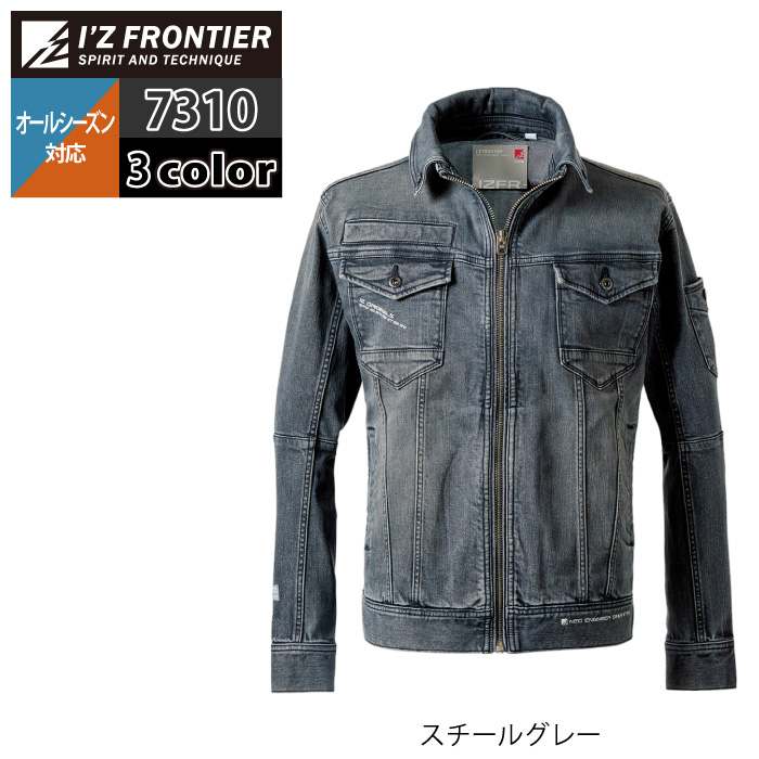 アイズフロンティア 作業服 2025秋冬新作 7310 ストレッチデニムワークジャケット S-4L オールシーズン 作業着 おしゃれ