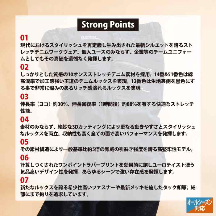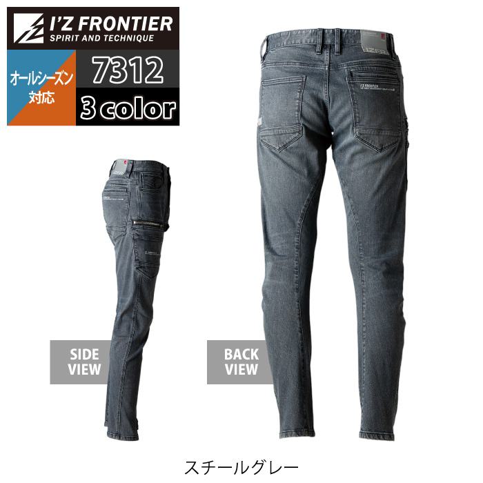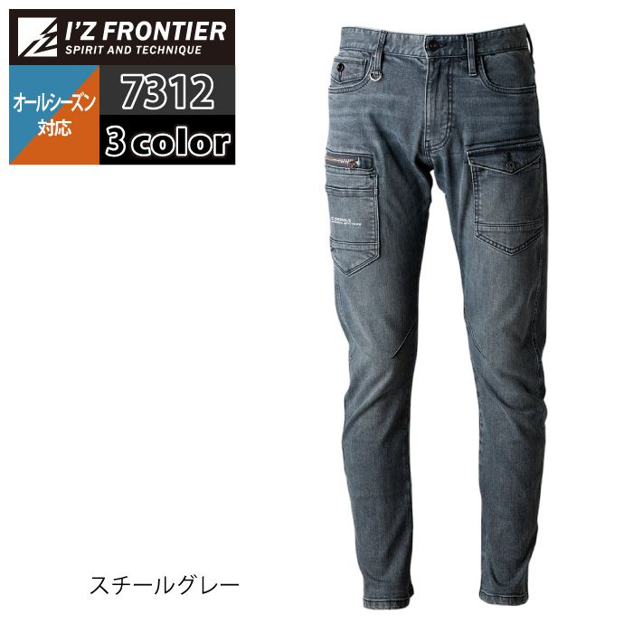 アイズフロンティア 作業服 2025秋冬新作 7312 ストレッチデニムカーゴパンツ 73-101 オールシーズン 作業着 おしゃれ