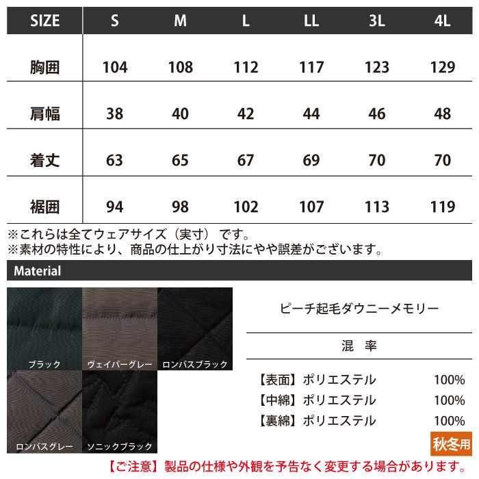 ・素材:ピーチ起毛ダウニーメモリー/ポリエステル100%