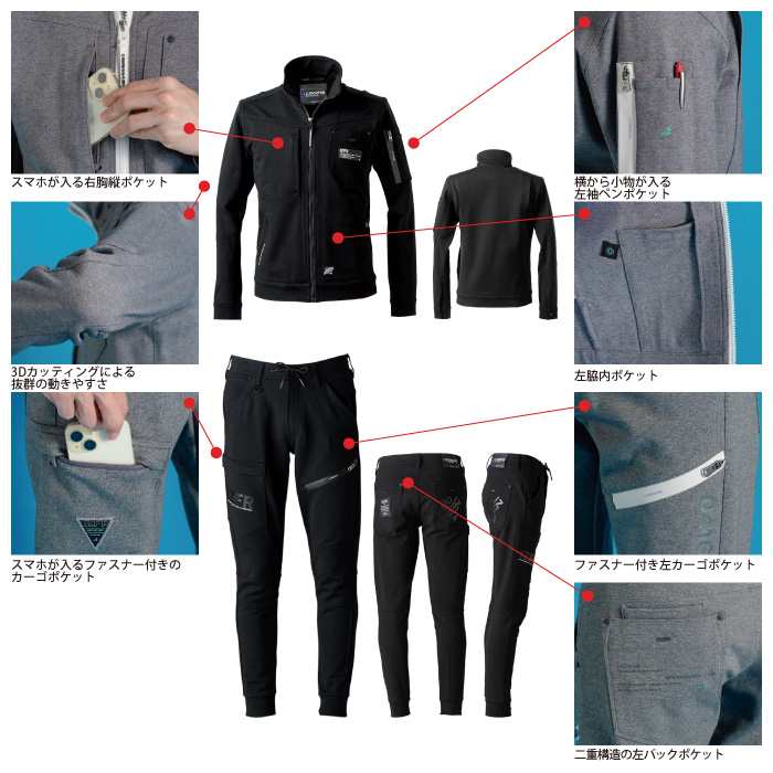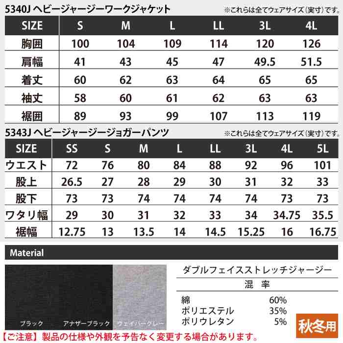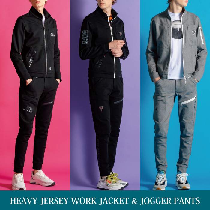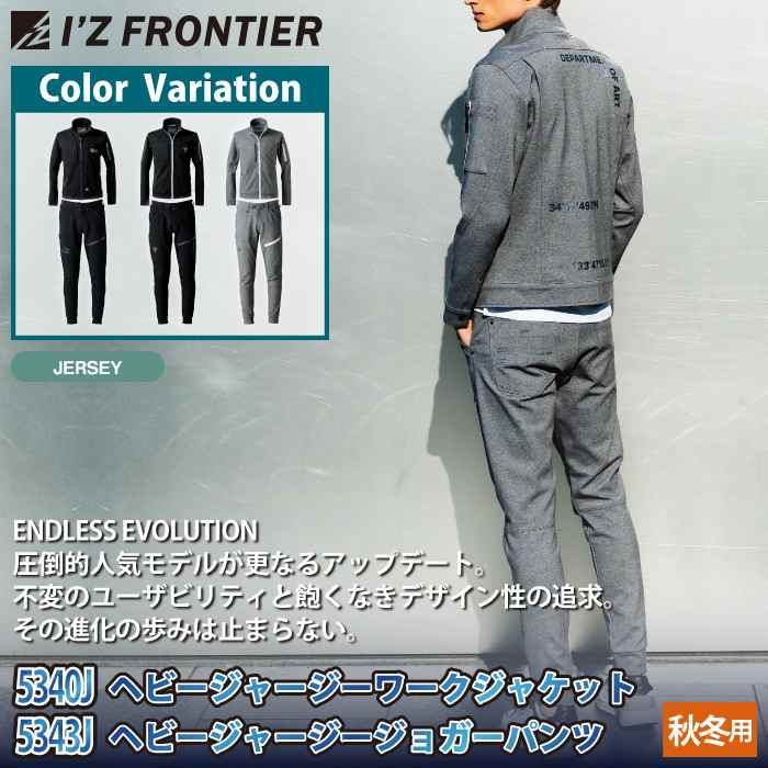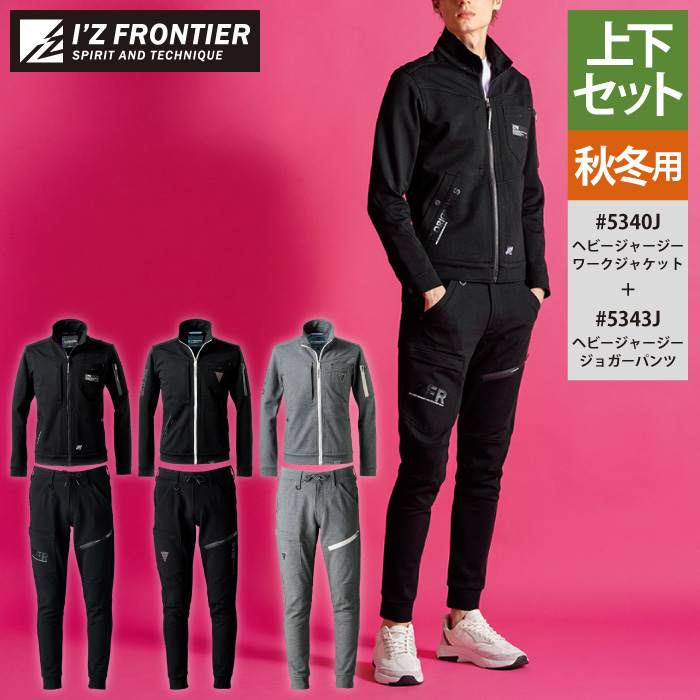 アイズフロンティア 作業服 上下セット 5340J ヘビージャージーワークジャケット と 5343J ヘビージャージージョガーパンツ 秋冬 作業着 作業ズボン