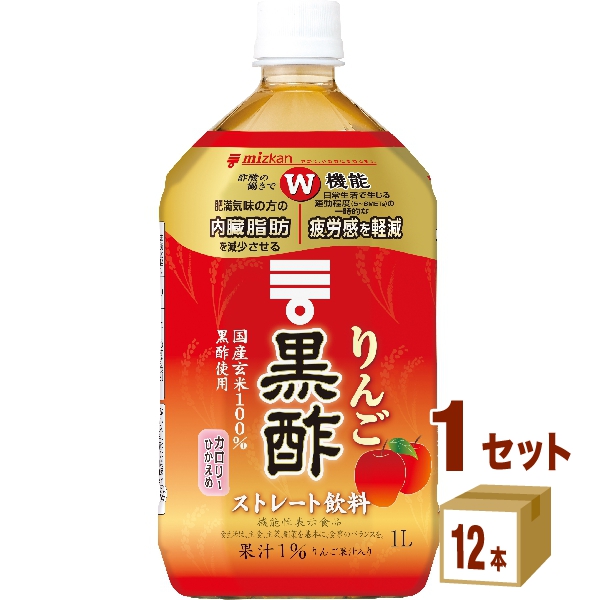 ミツカン りんご黒酢 ストレート お酢ドリンク 1000ml 1ケース (12本)