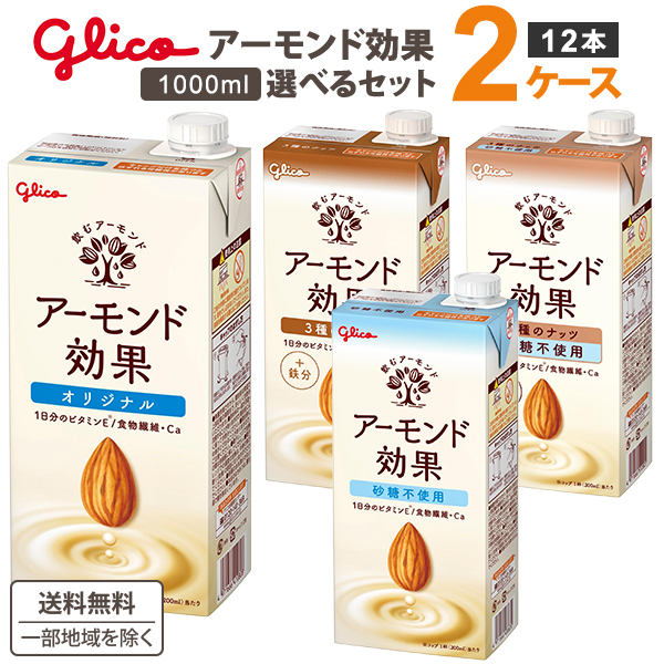 グリコ アーモンド効果 1000ml 1L選べるセット 2種類(6本×2種)合計12本 オリジナル 砂糖不使用 3種のナッツ アーモンドミルク