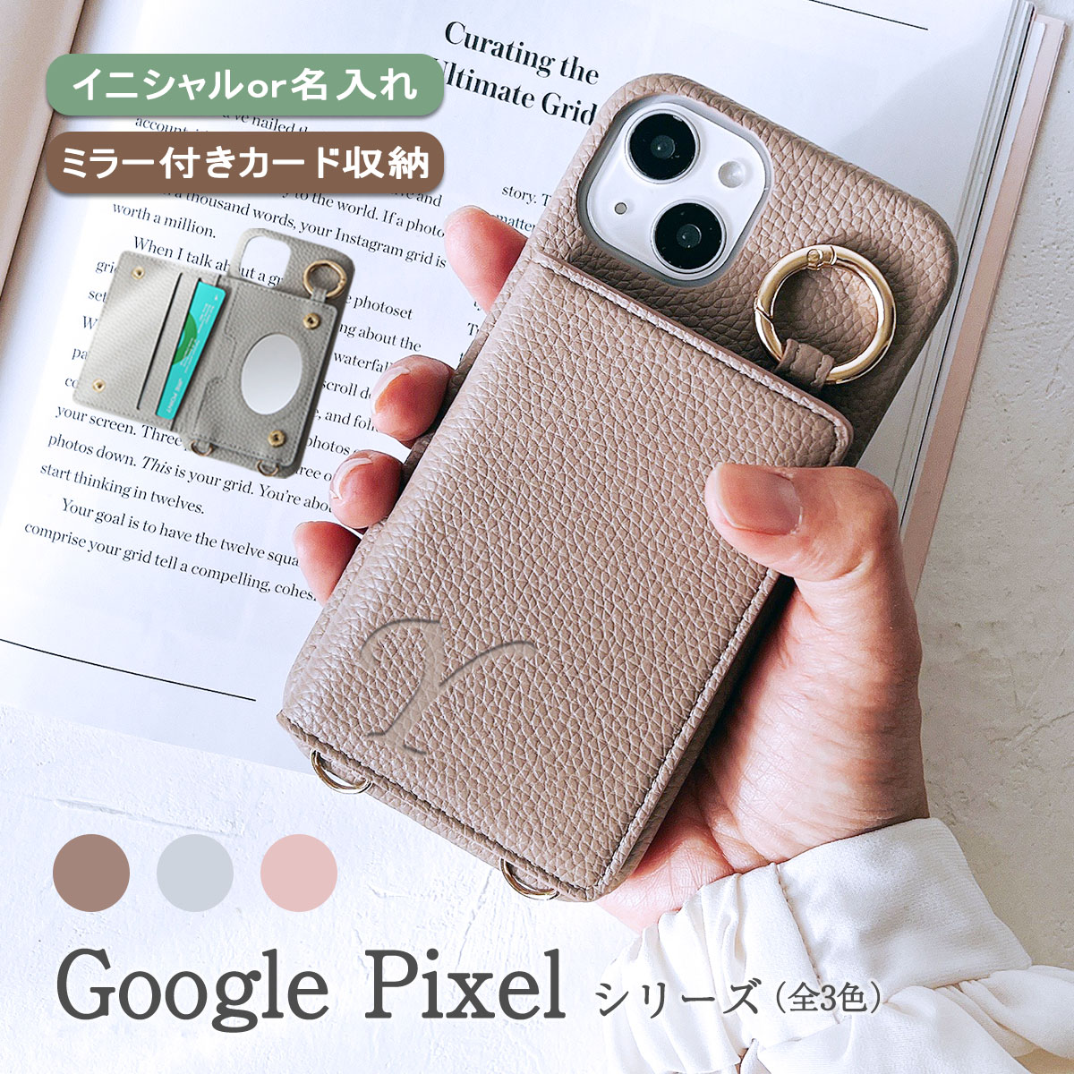 GooglePixel グーグルピクセル 10 10Pro 9a 9 8a ケース ショルダー ストラップ カード収納 「 背面 薄型 ミラー イニシャル付き 」