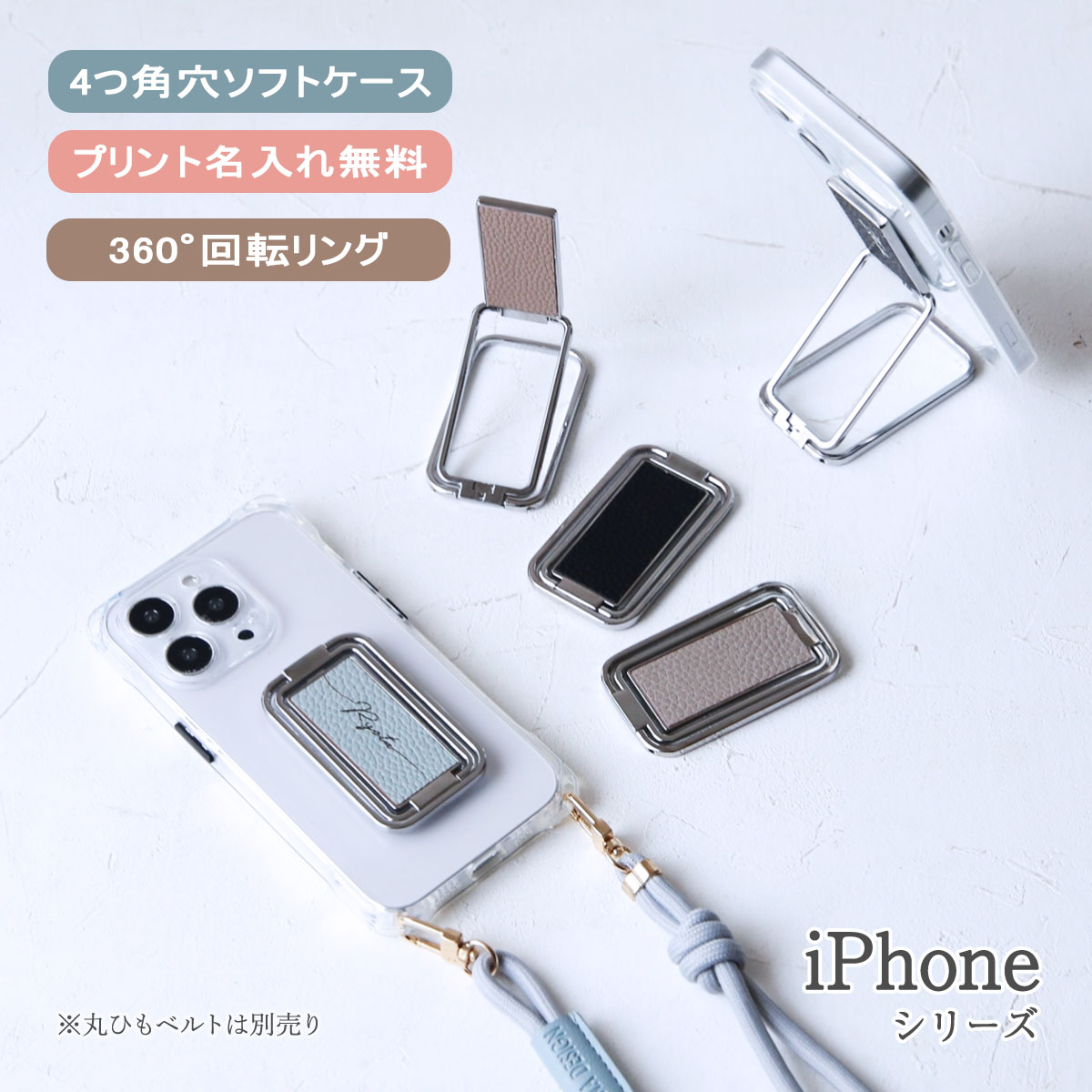 iPhone 17 16e 透明 ケース スマホ リング ショルダー ストラップ ソフト アイフォン 「 多機能 リング メタル スクエア プリント 名入れ 4つ穴ケース付き 」