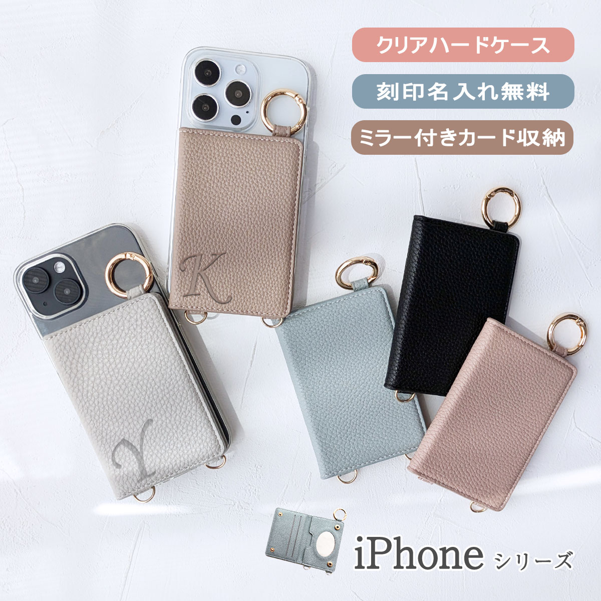 iPhone 17 16e スマホ ケース 鏡 カード収納 iPhone SE3 第3世代 カバー「 背面 薄型 ミラー イニシャル付き ハード クリアケース 」