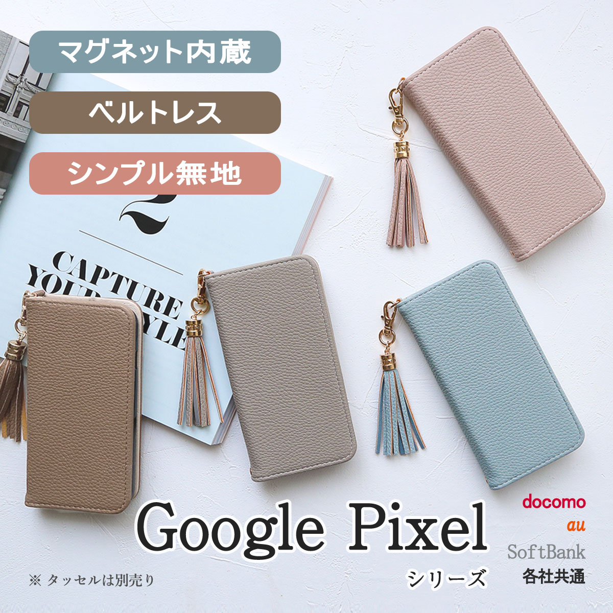 GooglePixel グーグルピクセル 10 10Pro 9a 9 8a ケース 手帳型 携帯 カバー ベルトなし 「 シンプル 無地 ベルトレス 」