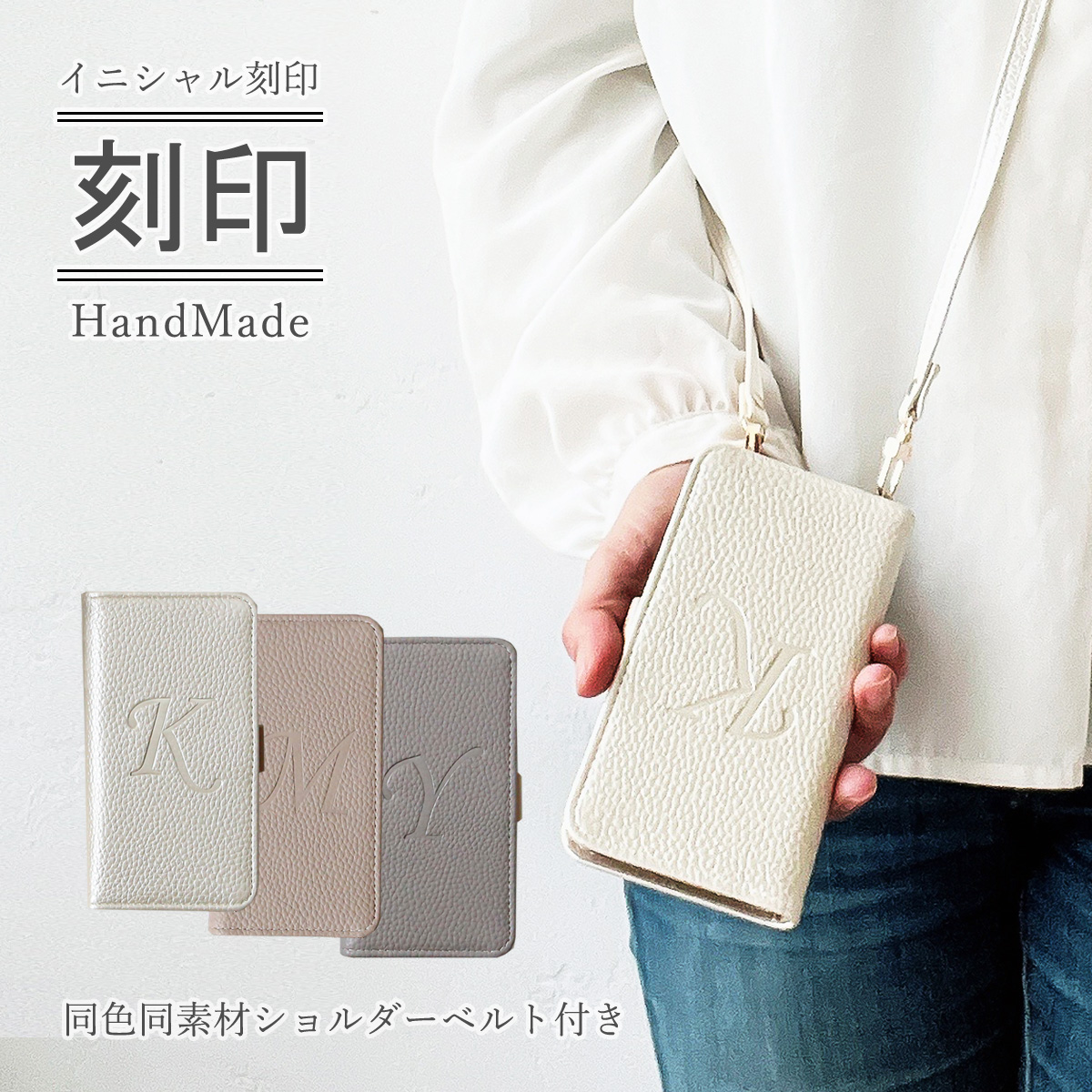 Galaxy ギャラクシー S25 S24 A55 A54 手帳型 ショルダー ケース 斜めがけ 刻印 「 縦向き 軽量 イニシャル ロングベルト付き 」