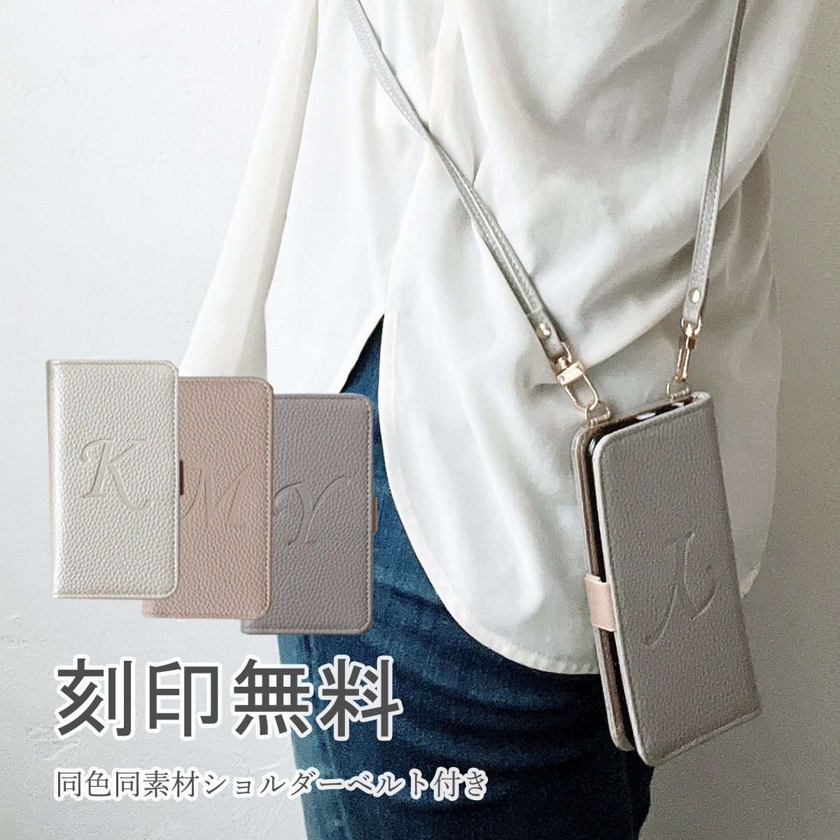 OPPO オッポ Reno 9A 7A A77 手帳型 ショルダー ケース 斜めがけ 刻印 「 縦向き 軽量 イニシャル ロングベルト付き 」