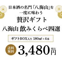 日本酒 八海山 飲みくらべ 4選 180ml 4本セット ギフト 箱付き 正規品 新潟県 八海醸造 純米大吟醸 大吟醸 普通酒 特別本醸造 4本 飲み比べ 長S