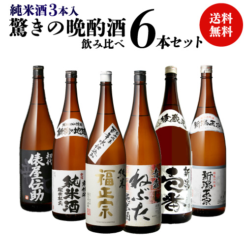 3/21〜22限定 全品P3倍 日本酒 1合あたり149円(税込) 毎日の晩酌にピッタリ 純米酒3本入 晩酌酒 1.8L×6本 飲み比べセット 送料無料