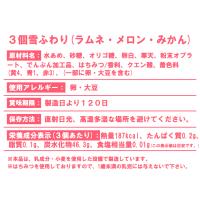 ラムネ・メロン・みかんの3種類をお楽しみいただけます。(各1個ずつ)