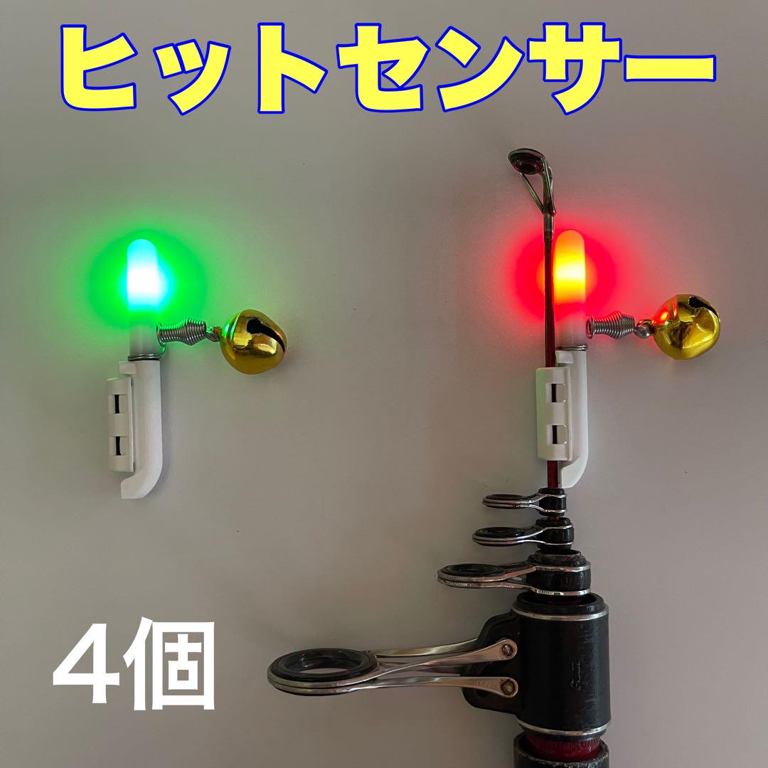 竿先ライト 4個 ヒットセンサー アタリ鈴付き アタリで変色(緑→赤)穂先ライト 夜光 ケミ グリーン レッド 点滅