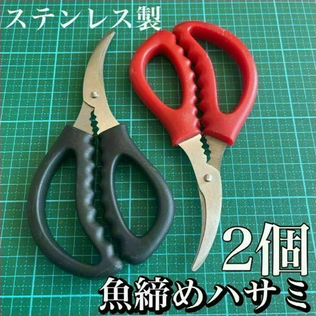 魚しめバサミ 2本セット レッド ブラック 魚締め 魚さばき 締め具 釣具 ラインカッター 釣り用ハサミ 血抜き 内臓処理 ステンレス 磯釣り 堤防釣り対応